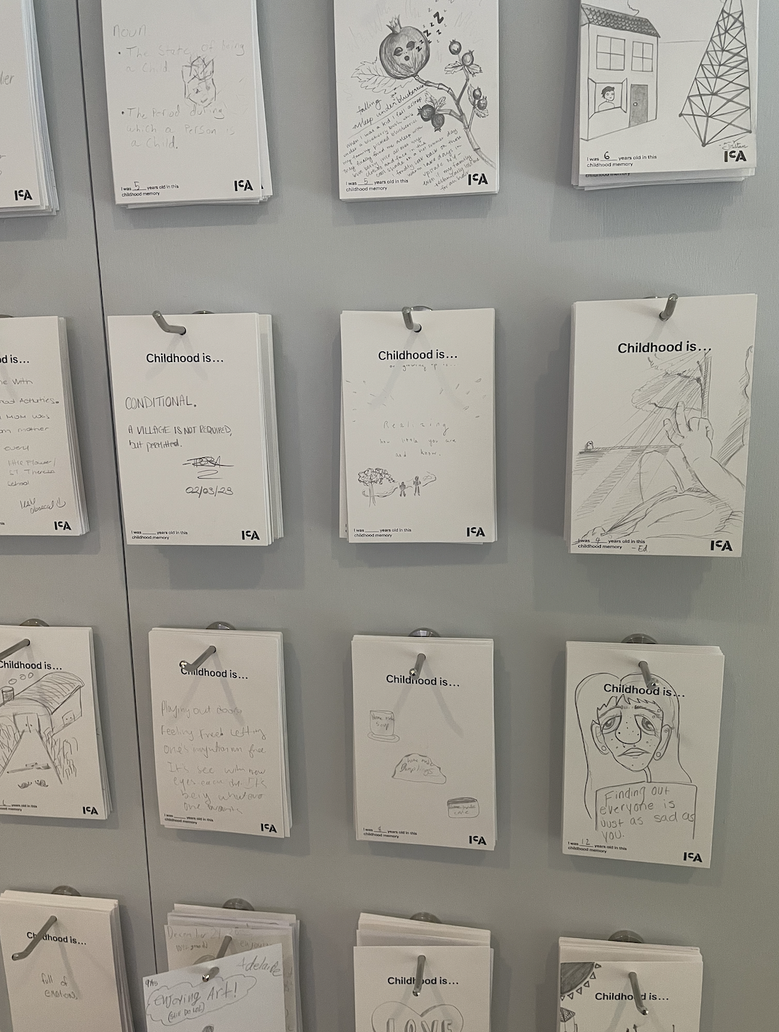 This particular design experience prompted you to watch a short video, and following guided you to an open ended question posted on the wall. “Childhood is…” When I arrived at the wall, there were already so many responses filled out, and I was excited to add my own.